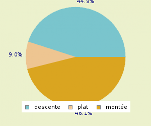 TOTAL: 9.42 Km/h MONTEE: 6.12 Km/h PLAT: 8.8 Km/h DESCENTE : 20.35 Km/h