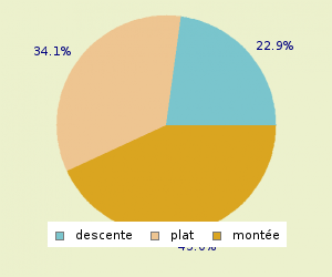 TOTAL: 14.12 Km/h MONTEE: 11.03 Km/h PLAT: 16.4 Km/h DESCENTE : 20.73 Km/h