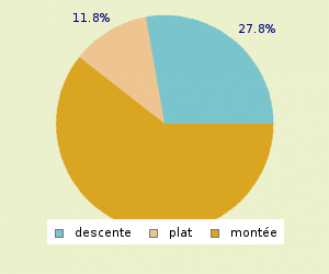 TOTAL: 6.71 Km/h MONTEE: 6.05 Km/h PLAT: 2.56 Km/h DESCENTE : 13.16 Km/h