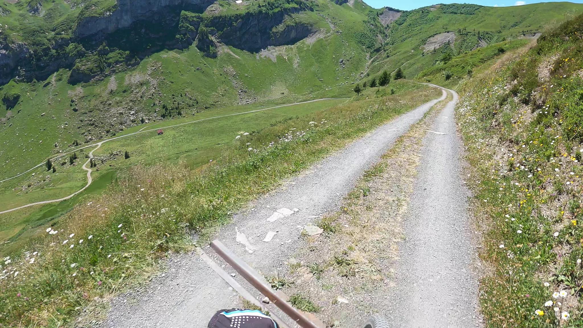 On entre alors dans l'étroit vallon de Barme, sur une route pierreuse très pentue qui finalement rejoint la route du Grand Paradis puis Champéry.