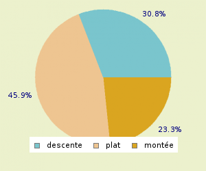 TOTAL: 13.33 Km/h MONTEE: 10.6 Km/h PLAT: 11.97 Km/h DESCENTE : 19.54 Km/h
